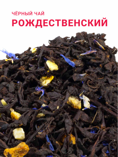 Купаж чёрного чая с цедрой апельсина, кусочками яблока и арахиса, цветами мальвы, корицей и жареным миндалём. Глубокий пряный аромат и волшебный вкус.