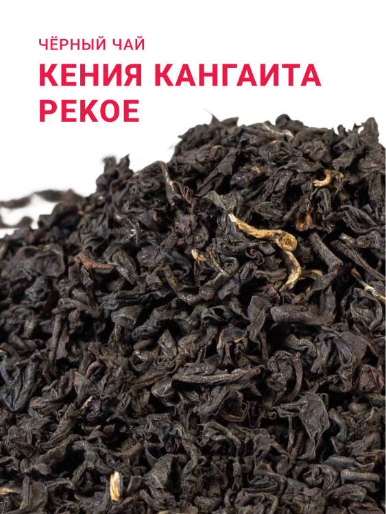 Кения Pekoe Кангаита – чёрный крупнолистовой чай, собранный на плантации Кангаита. Обладает приятным цветочным ароматом, терпким насыщенным вкусом с цветочным послевкусием. Настой насыщенный, тёмно-янтарный с красным оттенком.